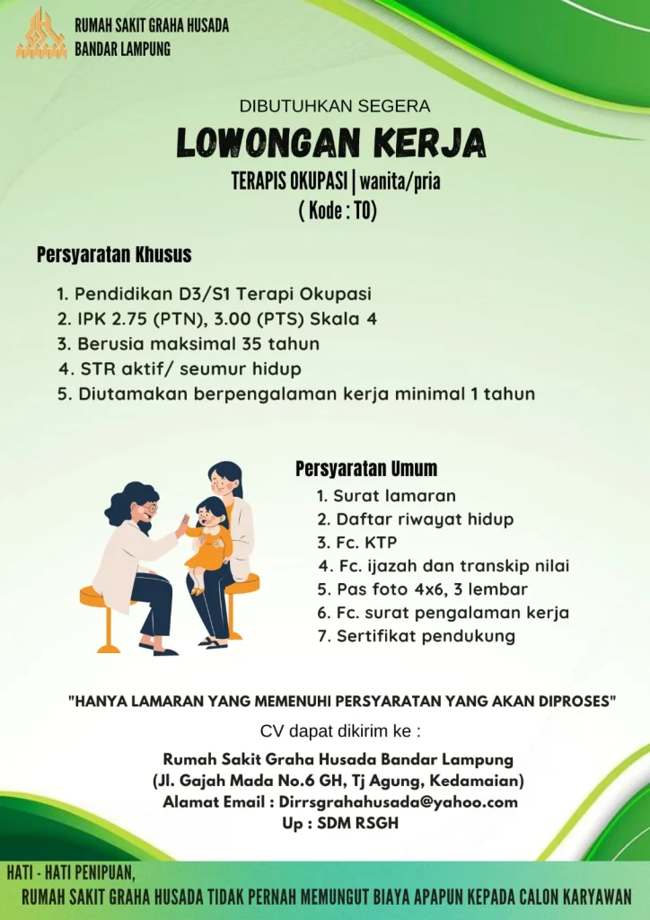 Informasi Lowongan Pekerjaan : Terapis Okupasi (Kode: TO)